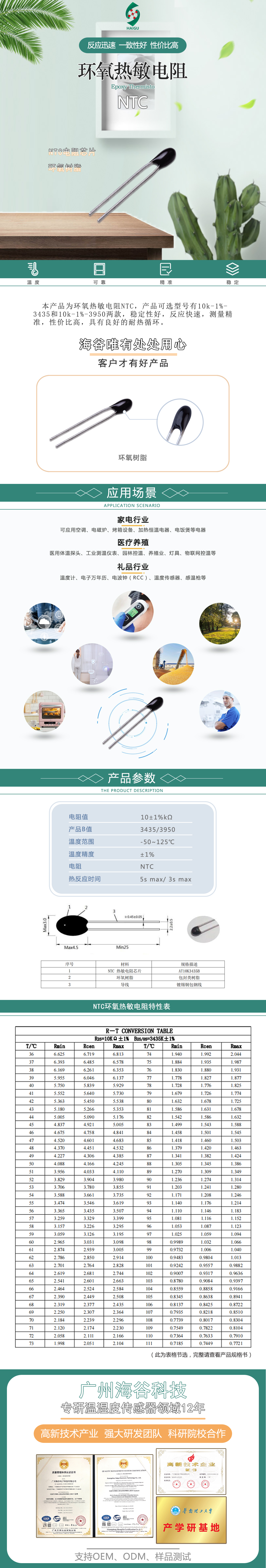 該產(chǎn)品為環(huán)氧熱敏電阻NTC,穩(wěn)定性好,反應(yīng)快速,良好的耐熱循環(huán)。