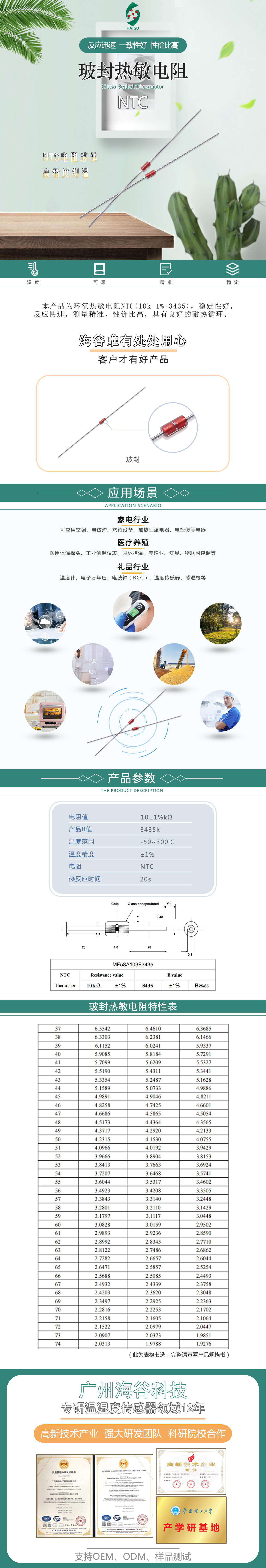該產品為熱敏電阻NTC(10K_1%_3435),穩(wěn)定性好,快速反應,良好的耐熱循環(huán)。