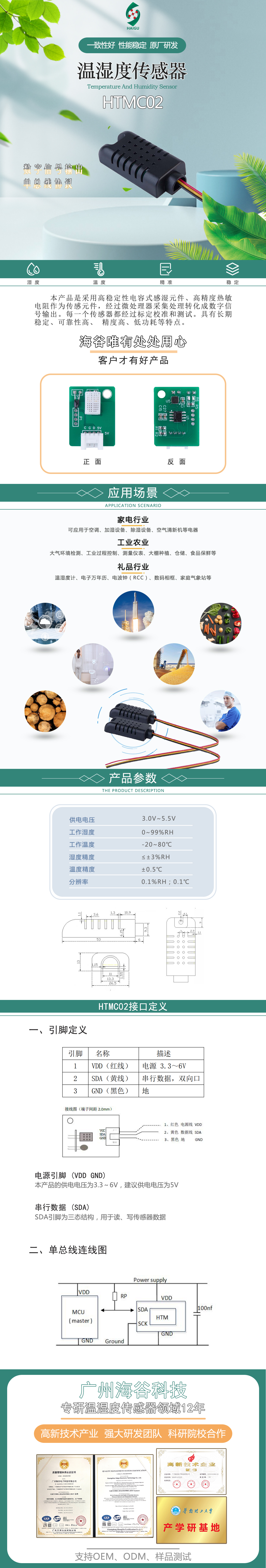 HTMC02是本產(chǎn)品是采用高穩(wěn)定性電容式感濕元件、高精度熱敏電阻作為傳感元件,經(jīng)過(guò)微處理 器采集處理轉(zhuǎn)化成數(shù)字信號(hào)輸出。每一個(gè)傳感器都經(jīng)過(guò)標(biāo)定校準(zhǔn)和測(cè)試。具有長(zhǎng)期穩(wěn)定、可靠 性高、 精度高、低功耗等特點(diǎn)。本產(chǎn)品是采用高穩(wěn)定性電容式感濕元件、高精度熱敏電阻作為傳感元件,經(jīng)過(guò)微處理 器采集處理轉(zhuǎn)化成數(shù)字信號(hào)輸出。每一個(gè)傳感器都經(jīng)過(guò)標(biāo)定校準(zhǔn)和測(cè)試。具有長(zhǎng)期穩(wěn)定、可靠 性高、 精度高、低功耗等特點(diǎn)。